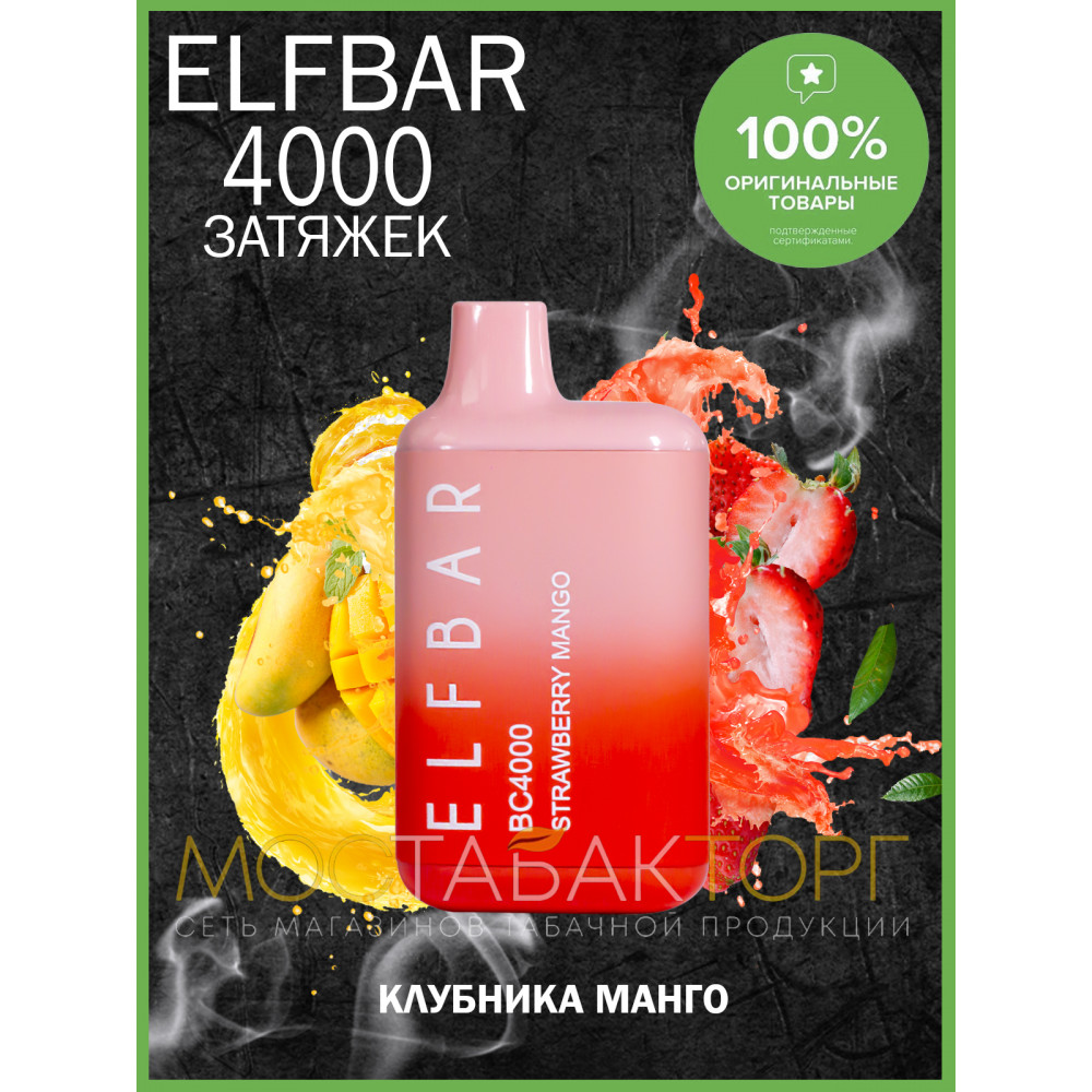 Elf Bar видыBC 4000 Elf Bar вкусыКлубника Манго Elf Bar количество в блоке10 шт