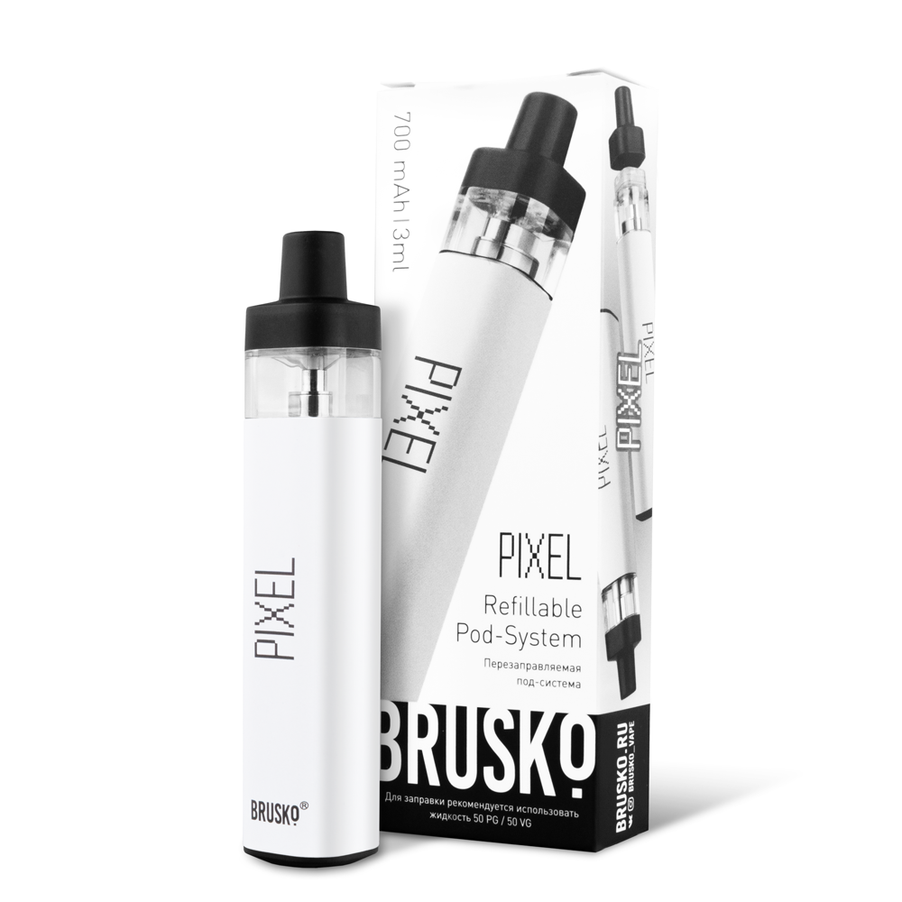 Перезаправляемая Под-Система Бруско Пиксель (Brusko Pixel) 700 mah, Белый - купить в Курильске